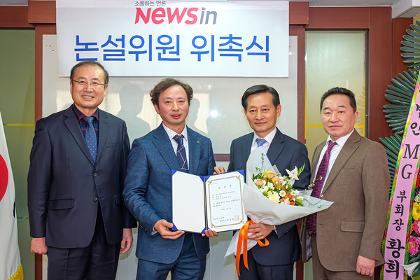 [뉴스인] 민경찬 기자 = 3일 오후 종로구 뉴스인미디어 회의실에서 전문위원 위촉 행사가 열려 황희곤 MG세무조사컨설팅 대표세무사(오른쪽 두 번째)가 논설위원 위촉장을 받고 최명규 대표(왼쪽 두 번째) 등과 기념사진을 찍고 있다. 본 행사는 코로나19 방역 수칙을 지키며 진행됐으며 사진 촬영 시 잠깐 마스크를 벗기도 했다.