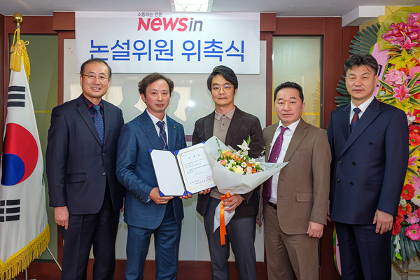 [뉴스인] 민경찬 기자 = 3일 오후 종로구 뉴스인미디어 회의실에서 전문위원 위촉 행사가 열려 장희정 DTC글로벌 파트너스 대표(가운데)가 논설위원 위촉장을 받고 최명규 대표(왼쪽 두 번째) 등과 기념사진을 찍고 있다. 본 행사는 코로나19 방역 수칙을 지키며 진행됐으며 사진 촬영 시 잠깐 마스크를 벗기도 했다.