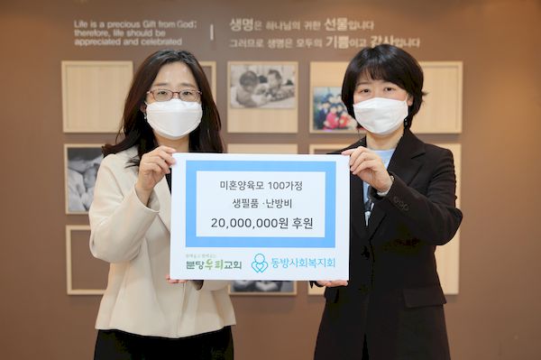 [뉴스인] 조진성 기자 = 사회복지법인 동방사회복지회가 지난 1월과 2월 코로나19로 생활 및 경제적 어려움을 겪고 있는 미혼양육모 100가정에 생필품 및 난방비를 지원했다고 18일 밝혔다.