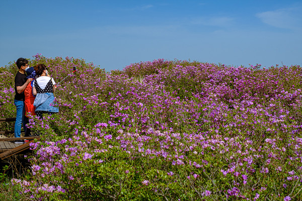 [뉴스인] 민경찬 기자 = 지난 8일 오후 경남 산청군 차황면 소재 황매산(해발 1113m) 정상 부근에서 한 가족이 산 정상을 배경으로 기념 사진을 찍고 있다. 올해 황매산 철쭉 축제는 코로나19로 취소됐으나 황매산 명물인 철쭉을 보려는 관광객들의 발길은 이어지고 있다.