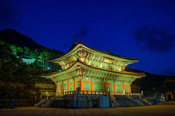 [뉴스인] 민경찬 기자 = 지난 8일 오후 경남 산청군 금서면 산청동의보감촌 내 동의전에 조명이 비치고 있다. 동의보감촌은 전통한방휴양관광지, 동의본가, 한방자연휴양림 등으로 조성돼 천혜의 자연 휴식공간으로 불리는 휴양과 치유의 산지다. 산청군은 지난 2013년 산청세계전통의약엑스포를 성공적으로 개최한 이래 10년째가 되는 2023년에 제2회 '산청세계전통의약항노화엑스포'를 준비하고 있다.