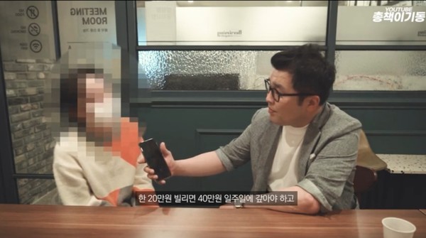 이 소장은 "법 개정으로 연이자가 20%를 넘으면 안되는데도 사채업자들은 온갖 협박으로 월 400%가 넘는 이자를 받아 챙겼다"며 "이런 사채업자들은 대부분 대부업 허가도 내지도 않은채 불법 사채업을 하고 있다"고 설명했다.