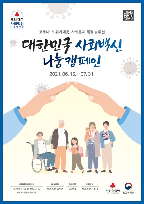 ‘우리대구 사회백신’ 나눔캠페인은 6월 15일부터 7월 31일까지 47일 동안 전개된다.