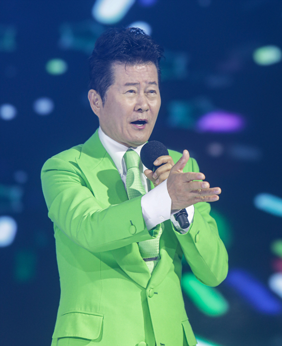 [뉴스인] 민경찬 기자 = 17일 오후 대구 수성구 호텔수성 컨벤션홀에서 '대한민국 힐링 콘서트'가 열려 1회 공연 출연 가수 태진아가 신곡 '공수래 공수거'를 부르고 있다.