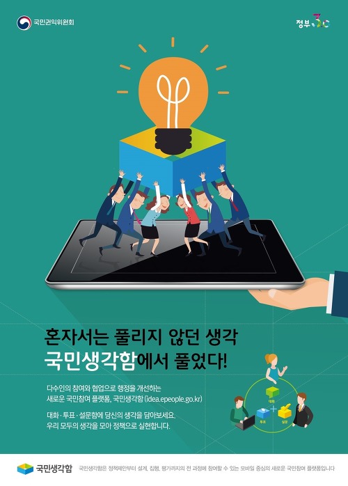 국민권익위원회(위원장 전현희)는 이번달 6일 공공기관 청렴수준 평가제도의 큰 틀을 바꾸는 개편방안을 발표했는데 이 개편방안에는 올해 4월 국민권익위가 운영하는 국민생각함을 통해 모은 국민의 생각이 다수 반영됐다.