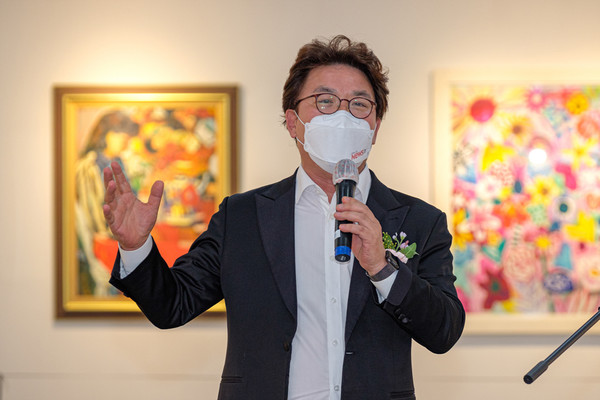[뉴스인] 민경찬 기자 = 16일 오후 서울 종로구 인사동 인사아트프라자갤러리(관장 허성미)에서 '한국 현대미술의 두 얼굴' 개막식이 열려 코리아아르츠그룹 테너 하만택 회장이 축가를 부르고 있다.