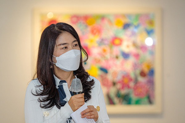 [뉴스인] 민경찬 기자 = 16일 오후 서울 종로구 인사동 인사아트프라자갤러리에서 '한국 현대미술의 두 얼굴' 개막식이 열려 허성미 관장이 인사말을 하고 있다.