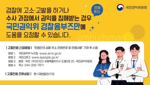 [뉴스인] 김기현 기자 = 국민권익위원회(위원장 전현희) 경찰옴부즈만은 일상에서 발생하는 경찰분야 생활민원을 해결한 사례를 4일 공개했다.