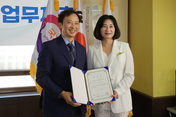 [뉴스인] 정경호 기자 = 4일 오후 서울 종로구 뉴스인미디어 회의실에서 뉴스인 논설위원 위촉식이 열려 성결대학교 관광개발학부 안순이 조교수가 논설위원 위촉장을 받고 뉴스인미디어 최명규 대표와 기념 촬영을 하고 있다. 안순이 논설위원은 향후 1년간 관광 전문 분야와 관련해 활동한다.