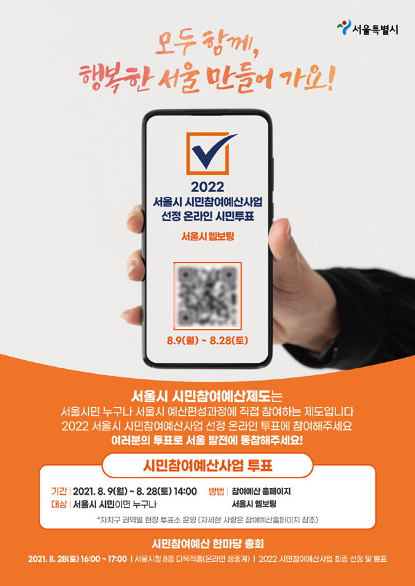 시민 투표 결과는 오는 28일 서울시청 다목적홀에서 개최되는 한마당 총회에서 최종 발표한다. 선정된 사업은 10월에 서울시 2022년 예산안에 반영되고 11월 서울시의회 심의·의결을 거쳐 연말에 최종 확정된다.