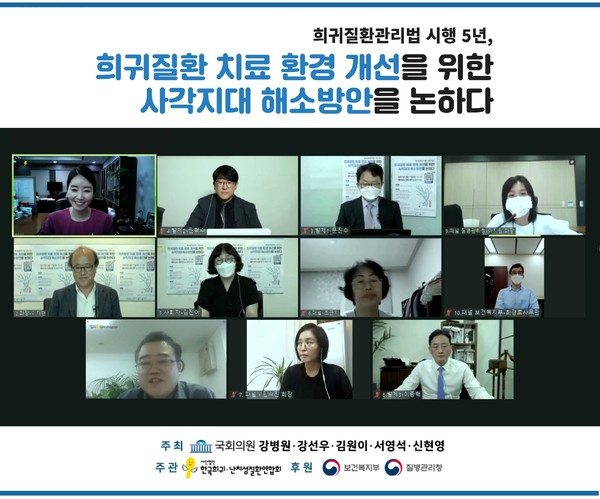 [뉴스인] 이현우 기자 =(사)한국희귀·난치성질환연합회는(회장 이태영) 국회 보건복지위원회 소속 강병원, 강선우, 김원이, 서영석, 신현영 의원(더불어민주당)과 함께 “희귀질환 치료환경 개선을 위한 사각지대 해소방안을 논하다” 비대면 정책토론회를 31일 개최했다고 밝혔다.