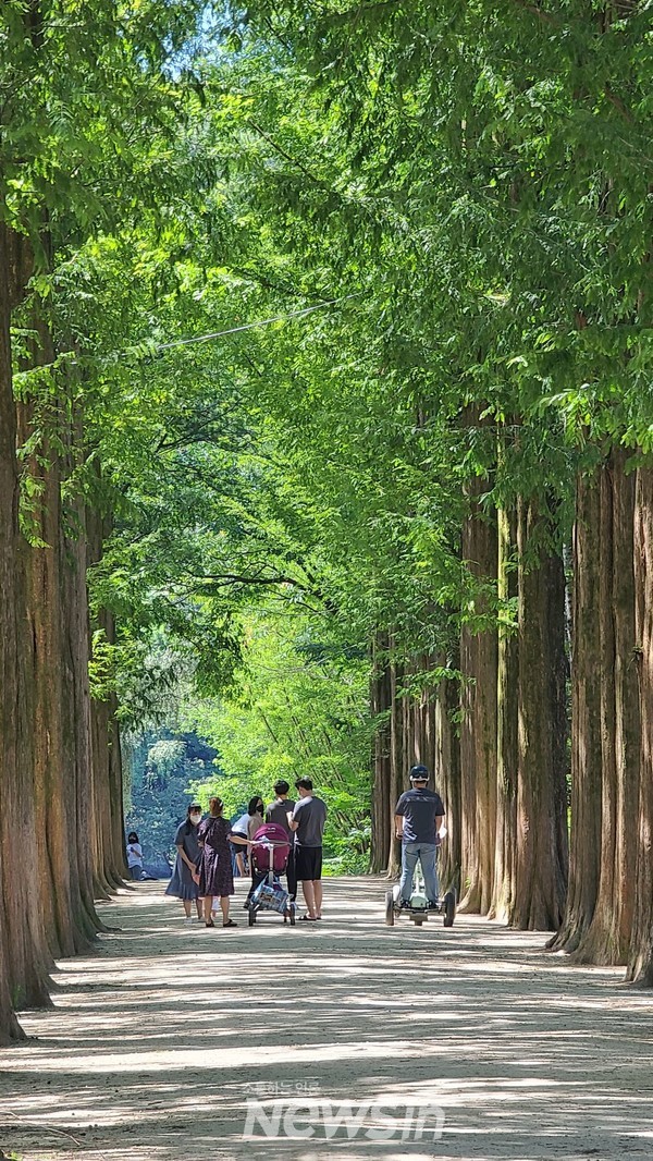[뉴스인] 정경호 기자 = 3일 화창한 날씨 속 남이섬 메타세쿼이아길(Metasequoia Lane)을 찾은 가족 단위의 관광객들이 신선한 공기를 마시며 가을 경취를 만끽하고 있다.