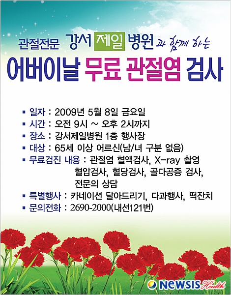 강서제일병원 사회사업실은 지난 2003년부터 6년 동안 매년 어버이 날과 연말에 '무료 관절염 검사'를 진행해왔다.