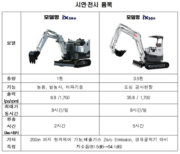 시연행사는 7일부터 9일까지 태화강 국가정원에서 열리며 전기굴착기 2종(1톤, 3.5톤) 전시 및 굴착시범, 농업 및 건설분야 수요자 시연체험 등을 할 수 있다.