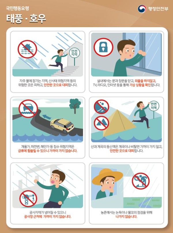 먼저 호우에 대비하여 산사태 취약지역·급경사지 사전점검·보강, 해안가 저지대 배수시설 정비 등 만조 대비, 저수율이 높은 댐 사전방류, 도심 침수위험 지하차도·둔치주차장,하천변 산책로 등 사전 예찰 및 상황관리를 강화하도록 했다.