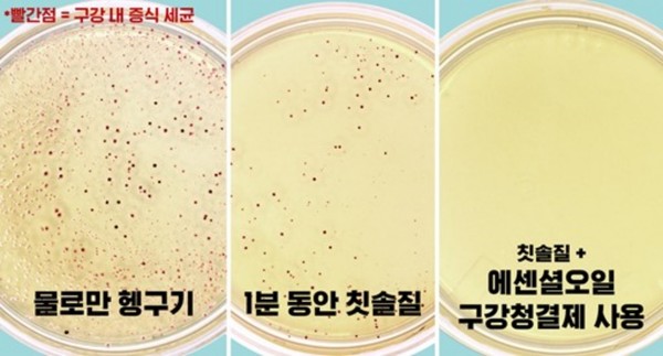 물리적인 방법인 칫솔 및 치실질을 하는 동시에 화학적인 방법이라 할 수 있는 구강청결제 사용을 병행하면, 액체라는 성분적 특성상 칫솔과 치실이 닿지 못하는 공간까지 효과적으로 관리할 수 있다.