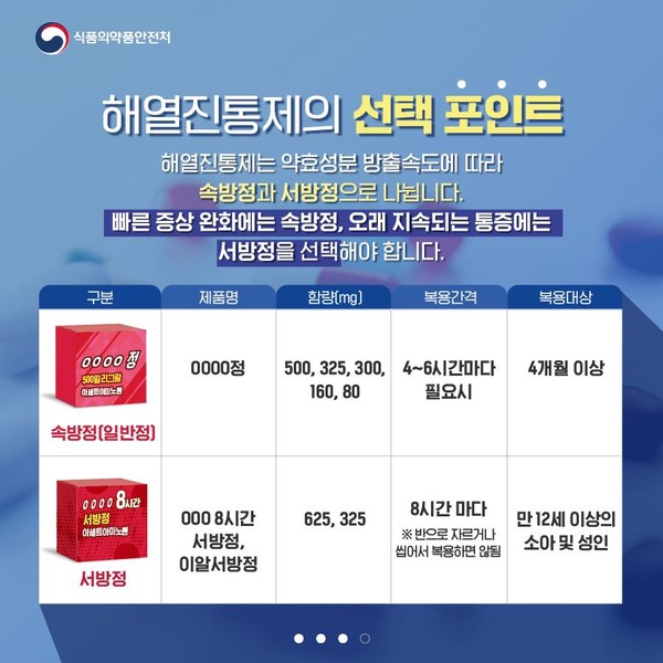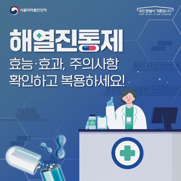 [뉴스인] 김기현 기자 = 식품의약품안전처(처장 김강립) 식품의약품안전평가원은 코로나19 백신 접종 후 발열, 근육통 등으로 해열진통제의 사용이 증가함에 따라 해열진통제의 종류, 효능・효과, 주의사항을 16일 안내했다.