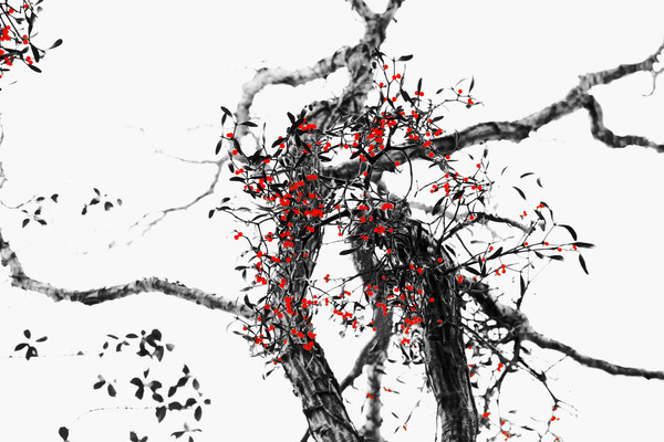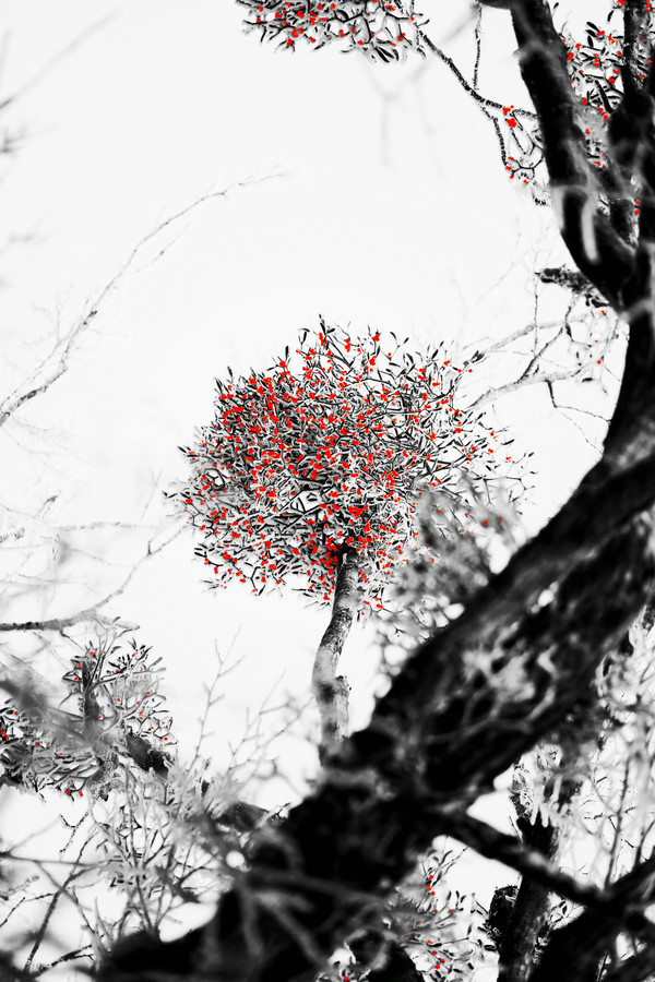 정상기 작가의 붉은겨우살이가 마치 참 황홀한 한 폭의 붉은 점이 있는 수묵화를 연상시키는 아름다운 사진들로 주목을 받는 가장 매력적인 이유이다.