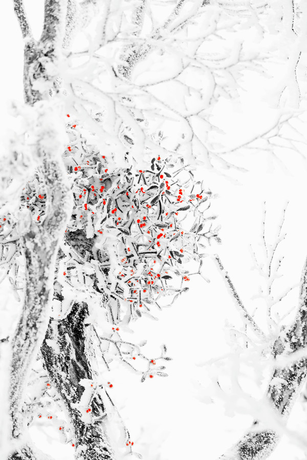 흰눈이 무릎 이상 차는 곳을 돌아다니면서 산속 겨울의 숨은 애인을 찾아 나선다. 형태와 모양은 물론 구도가 맞는 순간을 위해 계곡에서 구른 적도, 위험했던 순간도 여러 번을 거치며 오로지 겨우살이를 수소문했다.