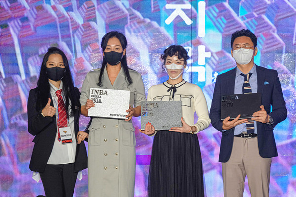 [뉴스인] 민경찬 기자 = 26일 오후 인천 연수구 송도동의 라마다 송도 호텔에서 '2021 머렐 위드 인바코리아 아시안 챔피언십'이 열려 심사위원 임현주 줌 스튜디오 대표(왼쪽 두 번째)가 명세영 인바코리아 프로모터(왼쪽)로부터 감사패를 받고 기념촬영을 하고 있다.