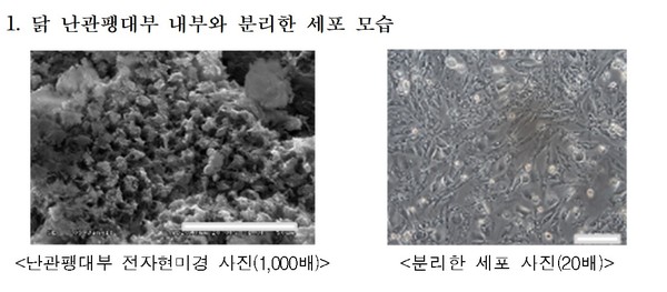 닭 난관 상피세포는 닭에서 직접 세포를 분리해 연구에 이용하고 있는데 그동안 분리와 배양이 원활하지 않아 어려움이 있었다. 연구진은 난관팽대부 내부 조직에 효소를 처리해 상피세포를 분리하여 체외 배양에 성공했다.