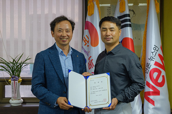 [뉴스인] 민경찬 기자 = (주)21세기 김성환 대표(오른쪽)이 소통하는 언론 뉴스인 미디어의 논설위원에 위촉돼 18일 최명규 뉴스인 미디어 대표와 위촉식을 마치고 기념 촬영을 하고 있다.