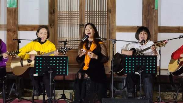 [뉴스인] 정경호 기자 = 7일 오후 전남 순천 순천부읍성 남문터 광장 일원에서 '순천문화재 야행' 순천부 읍성 부활 행사가 열려 통기타 공연단이 연주하고 있다.