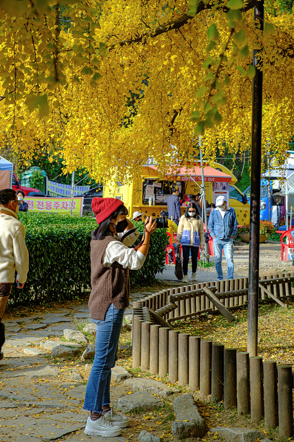 [뉴스인] 민경찬 기자 = 6일 오후 인천 남동구 장수동의 800년 된 은행나무를 찾은 한 시민이 은행나무를 찍고 있다. 이 나무는 올해 2월 8일 천연기념물 제562호로 지정됐다.
