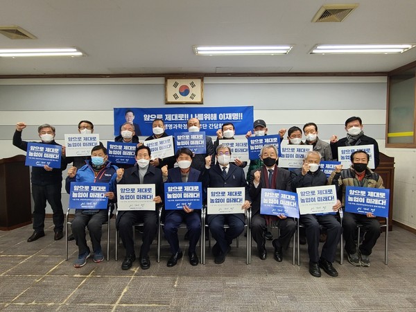이날 행사를 주관한 김병국(전 농협중앙회 이사) 생명과학 정책특보단 협동조합분과위원장은 “이재명후보는 농정공약에서 밝혔듯이 도농간 소득격차를 해소하고 농민이 주인되는 자치분권 농정을 실현할 적임자”라며 “이재명후보 당선을 위해 최선을 다할 것을 결의한다”고 밝혔다