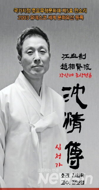 판소리란 소리꾼(창자) 1인과 반주자인 북 치는 사람(고수 장보영) 1인, 그리고 관객으로 이루어지는 무대예술로 창자는 소리와 대사(아니리)·몸짓(발림)을 하며, 고수는 창자의 가락에 따라 북을 치며 분위기를 이끌어 가는 1인 다역의 예술이다.